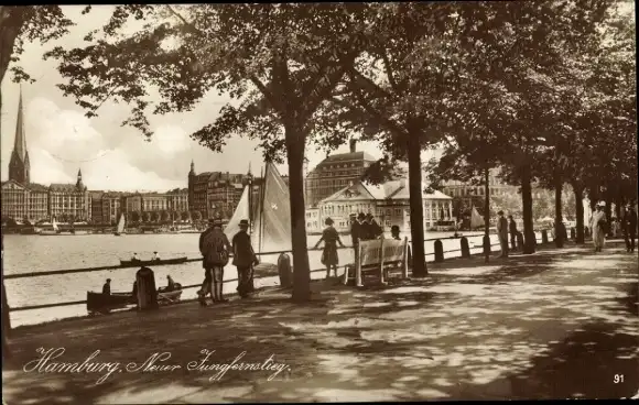Ak Hamburg Mitte Neustadt, Jungfernstieg, Personen, Segelboot