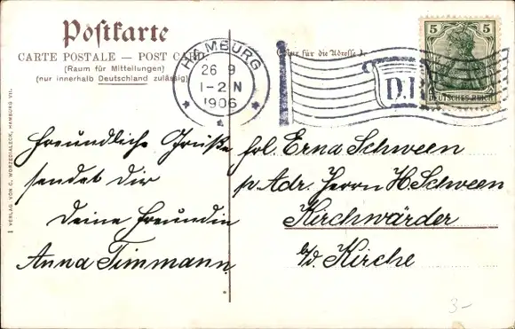 Zustand, siehe Scan, gelaufen, 1906 - ca 14 cm X 9 cm