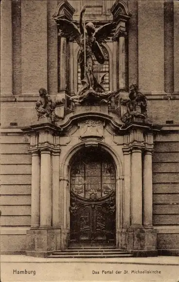 Ak Hamburg Mitte Neustadt, Michaeliskirche, Kirche St. Michaelis, Michel, Portal