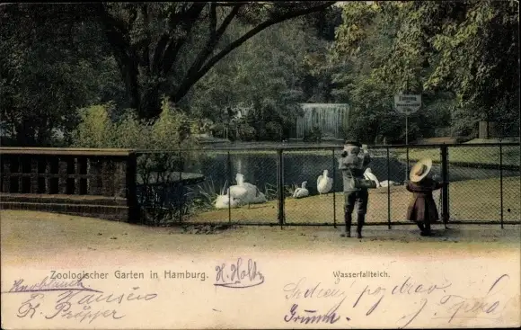 Ak Hamburg Mitte Neustadt, Zoologischer Garten, Wasserfallteich
