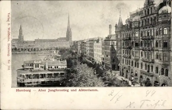 Ak Hamburg Mitte Neustadt, alter Jungfernstieg, Alsterdamm, Kirchtürme