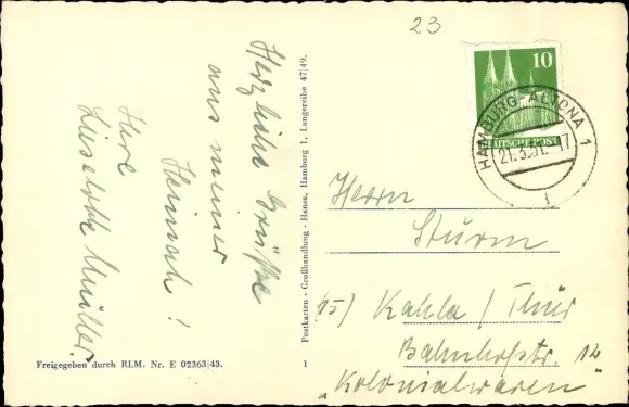 Zustand, siehe Scan, gelaufen, 1951 - ca 14 cm X 9 cm
