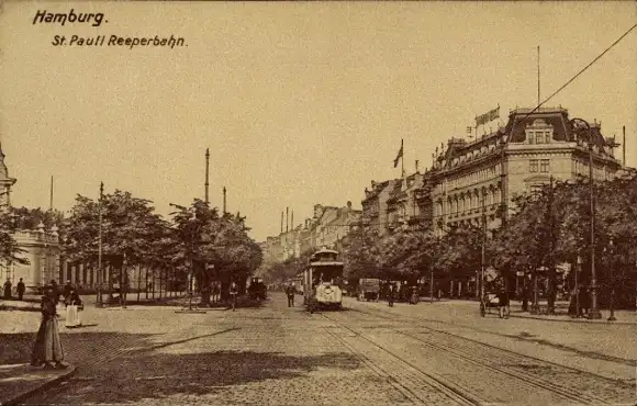 Ak Hamburg Mitte St. Pauli, Reeperbahn, Straßenbahn