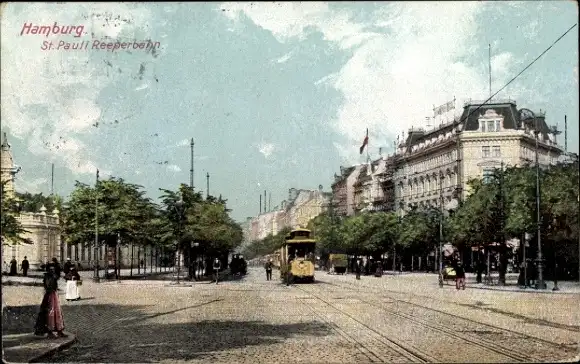 Ak Hamburg Mitte St. Pauli, Reeperbahn, Straßenbahn