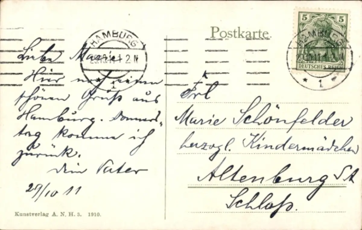 Zustand, siehe Scan, gelaufen, 1911 - ca 14 cm X 9 cm