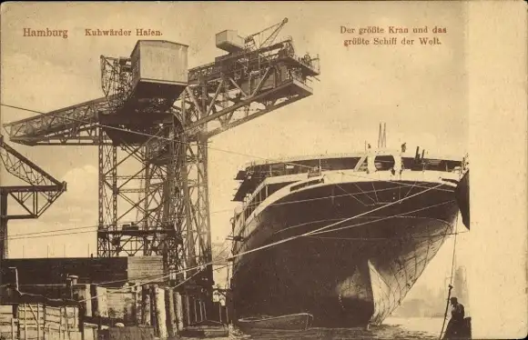 Ak Hamburg Mitte Steinwerder Kuhwerder, Hafen, Kran, Dampfer