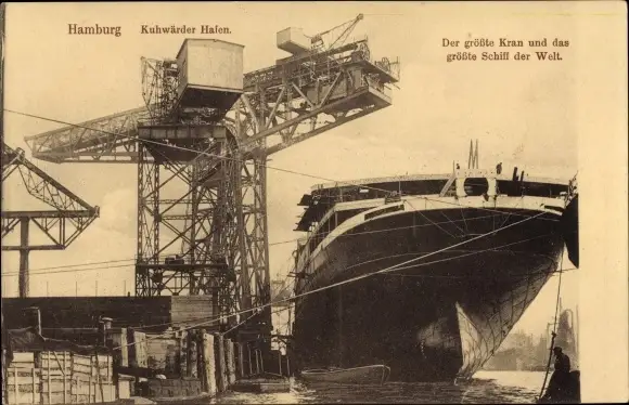 Ak Hamburg Mitte Steinwerder Kuhwerder, Hafenpartie, Kran, Dampfer