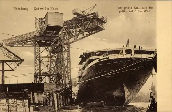 Ak Hamburg Mitte Steinwerder Kuhwerder, Hafenpartie, Kran, Dampfer