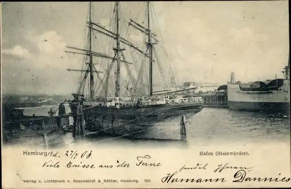 Ansichtskarte, Postkarte, Hafen, Schiffe, Boote, Dampfer, Boot