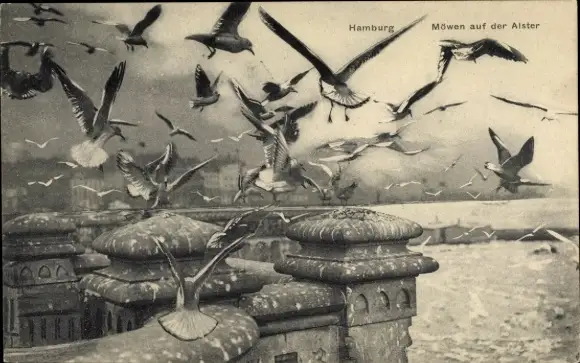 Ak Hamburg, Möwen auf der Alster