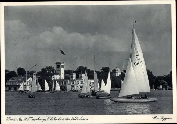 Ak Hamburg Nord Uhlenhorst, Uhlenhorster Fährhaus, Segelboote