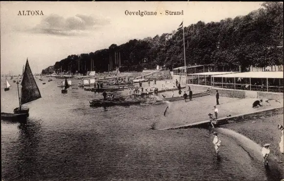 Ak Hamburg Oevelgönne Altona Othmarschen, Strand, Boote, überdachte Terrasse