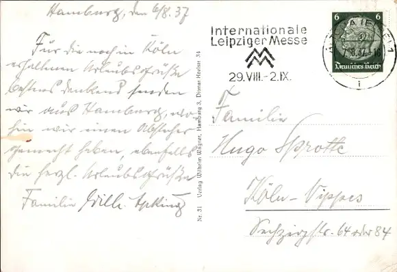 Zustand, siehe Scan, gelaufen, 1937 - ca 15 cm X 10 cm