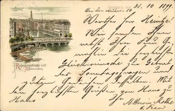Zustand, siehe Scan, gelaufen, 1899 - ca 14 cm X 9 cm