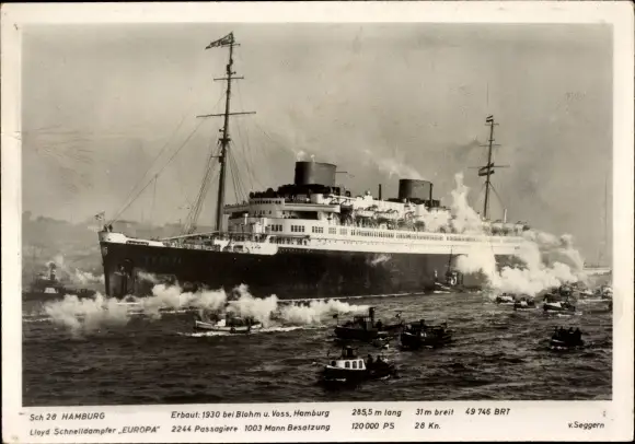 Ak Hamburg, Schnelldampfer Europa, NDL, Schleppboote