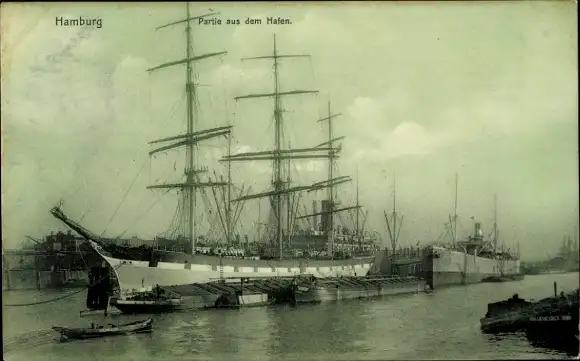 Ak Hamburg, Segelschiff im Hafen, Dampfer