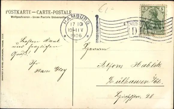 Zustand, siehe Scan, gelaufen, 1906 - ca 14 cm X 9 cm