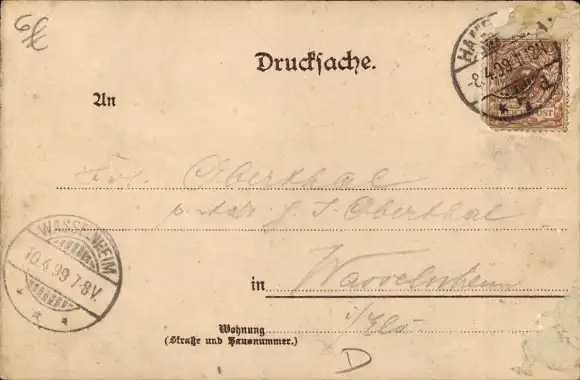 Zustand, siehe Scan, gelaufen, 1899 - ca 14 cm X 9 cm