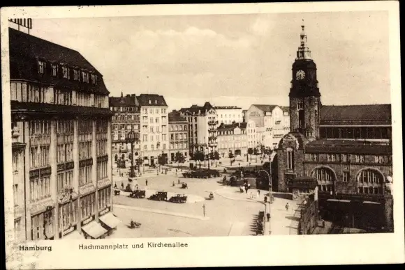 Ak Hamburg St. Georg, Hachmannplatz und Kirchenallee
