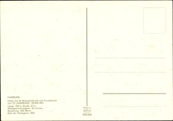 Ak Hamburg, TS Hamburg, Hamburg Atlantic Line, Michaeliskirche, Fernsehturm