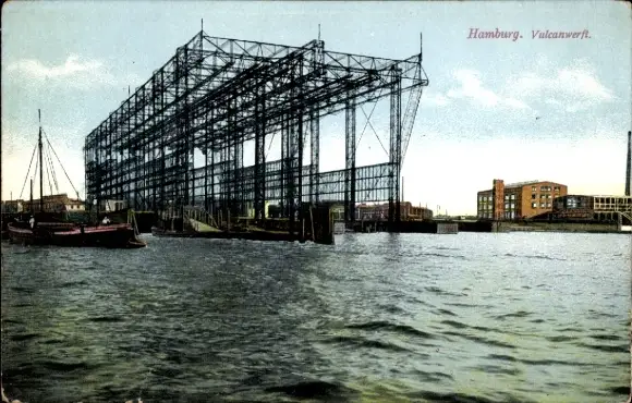 Ak Hamburg, Vulkanwerft, Stahlgerüste