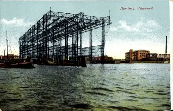 Ak Hamburg, Vulkanwerft, Stahlgerüste