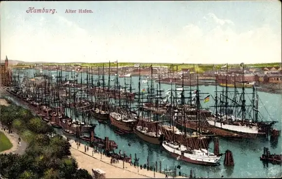 Ak Hamburg, alter Hafen, Segelschiffe