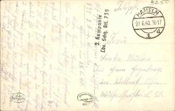 Zustand, siehe Scan, gelaufen, 1940 - ca 5 cm X 3 cm