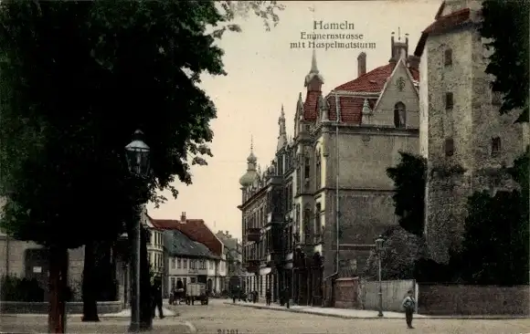 Ak Hameln an der Weser Niedersachsen, Emmernstraße mit Haspelmatsturm
