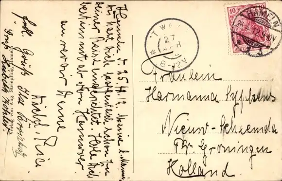 Zustand, siehe Scan, gelaufen, 1912 - ca 14 cm X 9 cm
