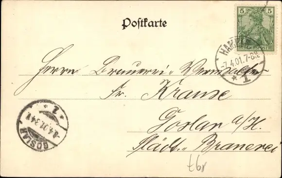 Zustand, siehe Scan, gelaufen, 1901 - ca 14 cm X 9 cm