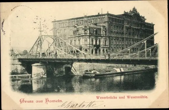 Ak Hameln an der Weser Niedersachsen, Weserbrücke, Wesermühle