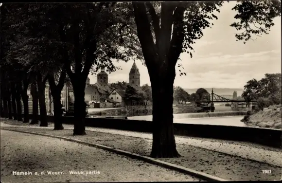 Ak Hameln an der Weser Niedersachsen, Weserpartie