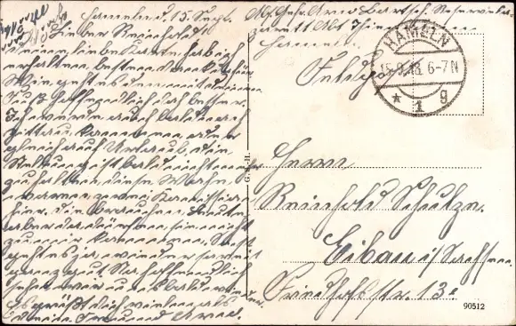 Zustand, siehe Scan, gelaufen, 1918 - ca 14 cm X 9 cm