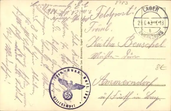 Zustand, siehe Scan, gelaufen, 1943 - ca 14 cm X 9 cm