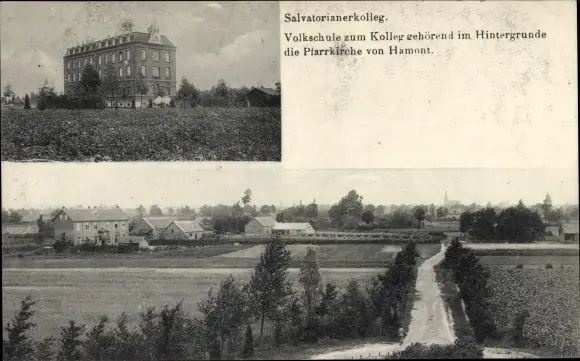 Ak Hamont Flandern Limburg, Salvatorianerkolleg, Volksschule, Pfarrkirche
