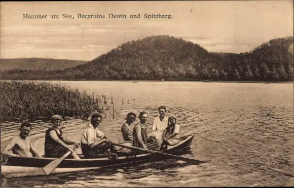 Ak Hamr na Jezeře Hammer am See Region Reichenberg, Ruderboot, Spitzberg und Ruine Dewin