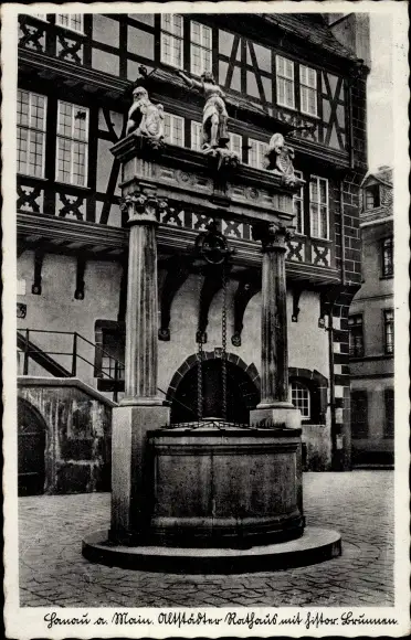 Ak Hanau am Main, Altstädter Rathaus, Brunnen