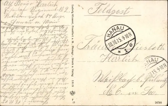 Zustand, siehe Scan, gelaufen, 1915 - ca 14 cm X 9 cm