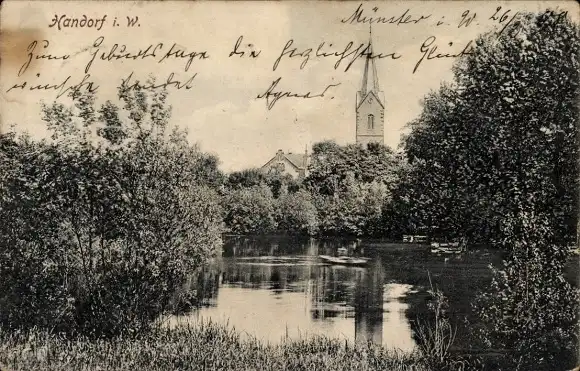 Ak Handorf Münster in Westfalen, Teilansicht, Kirche