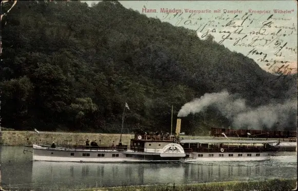 Ak Hann. Münden in Niedersachsen, Blick auf den Dampfer Kronprinz Wilhelm