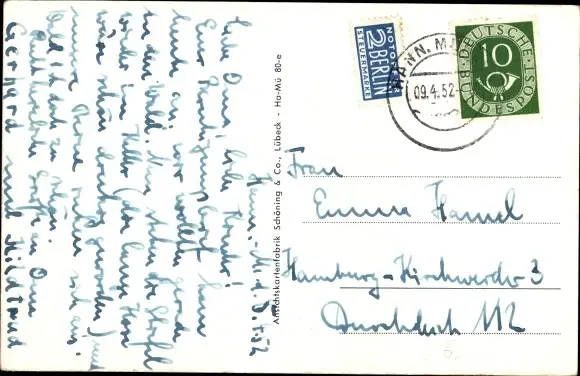 Zustand, siehe Scan, gelaufen, 1952 - ca 9 cm X 14 cm