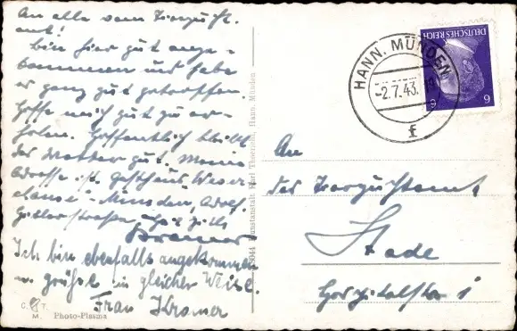 Zustand, siehe Scan, gelaufen, 1943 - ca 9 cm X 14 cm