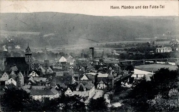 Ak Hann. Münden in Niedersachsen, Totalansicht, Fulda-Tal