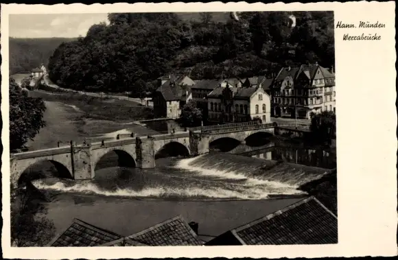 Ak Hann. Münden in Niedersachsen, Totalansicht der Werrabrücke