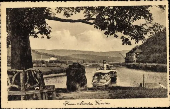 Ak Hann. Münden in Niedersachsen, Weserstein, Schiff