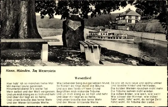 Ak Hann. Münden in Niedersachsen, Weserstein, Schiff