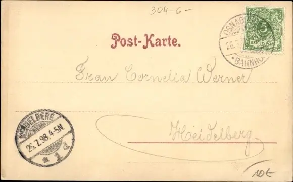 Zustand, siehe Scan, gelaufen, 1898 - ca 14 cm X 9 cm