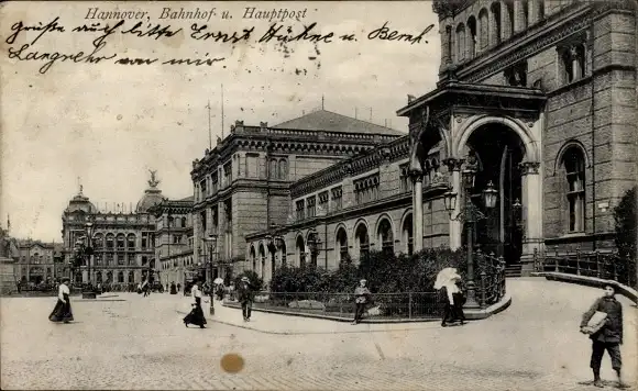 Ak Hannover in Niedersachsen, Bahnhof, Hauptpost