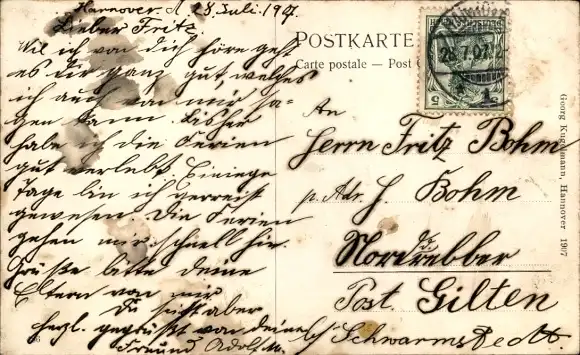 Zustand, siehe Scan, gelaufen, 1907 - ca 14 cm X 9 cm